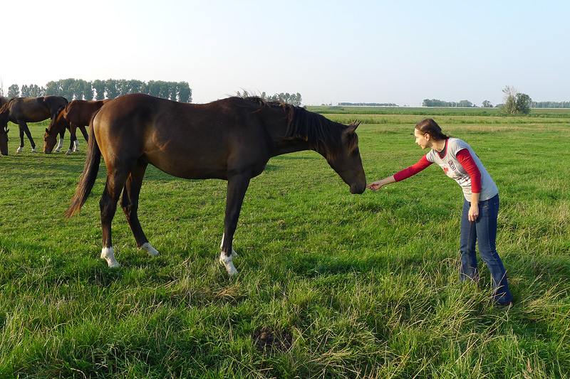 Jeśli jednak kontakt oznacza dla Ciebie ganaszowanie końskiej głowy i trzymanie jej w jakiejkolwiek pozycji, co wychodzi tym gorzej, im silniejszy jest koń – nie bierz się za młodego konia. Jeśli działanie łydki polega na podkopywaniu konia i zaciskaniu jej tak, że tracisz parę w nogach – nie bierz się za młodego konia. Jeśli jazda konna i utrzymywanie się na końskim grzbiecie wymaga od Ciebie sporo wysiłku i jest dość męczące (czyli nie masz wystarczającej równowagi) – nie bierz się za młodego konia.