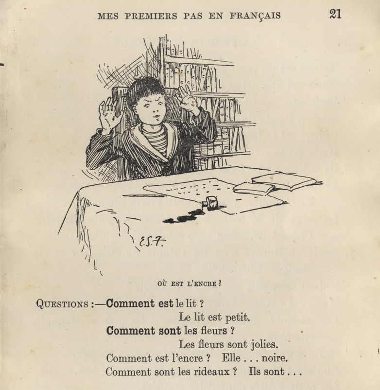 Coraz niecierpliwiej przewracasz strony, książka staje się nieco wymięta, a jedna kartka się nadrywa. Z frustracją i uporem maniaka dalej robisz swoje, no przecież miałaś się nauczyć języka! Co za durna książka! Z tomu wypada spis treści, ale w ogóle Cię to nie obchodzi, bo czujesz się zła, że nic nie idzie zgodnie z planem. O, czekaj – chyba jest wreszcie sensownego: w szyku zdań odnajdujesz wyraz lustre. To może bohater ogląda w lustrze swoje oblicze? Rondelle – pewnie coś sobie ugotował w garnuszku. Dalej jest jakiś jour (wymowa: żur), na pewno chodzi o żurek w rondelku?